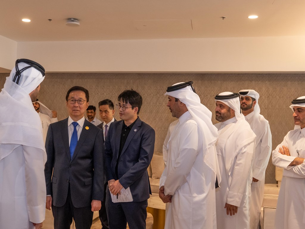 وكان في استقبال سعادة نائب رئيس جمهورية الصين الشعبية السيد خالد المولوي ، الرئيس التنفيذي سبيتار بالإنابة أيضاً عدد من كبار المسؤولين في مؤسسة أسباير زون وأعضائها، حيث عبّر سعادة هان تشنغ عن إعجابه بالمستوى المتقدم الذي وصلت إليه دولة قطر في البنية التحتية الرياضية، مؤكداً تطلعه إلى تعزيز التعاون وتبادل الخبرات بين الجانبين في مجالات الرياضة والتدريب وإدارة المنشآت الرياضية.